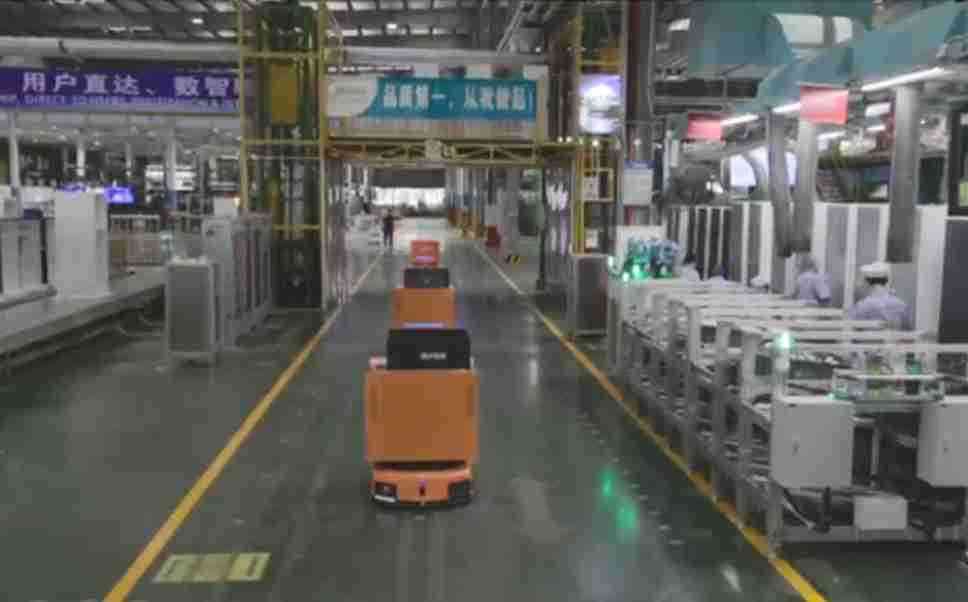 为车载冰箱物流配送打造的智能解决方案,,,,包含产中物流通过潜伏举升AMR搬运至线边,,,,产后成品物流智能仓储,,流程包含产中物流智能齐套入库,,,,线边安灯叫料AMR智能配送至线边,,,,成品入库、、、、出库,,通过无人堆高车机器人,,,智能仓储管理替代人工作业管理,,,实现更高存储、、、更高效率、、、更具柔性化的解决方案。。